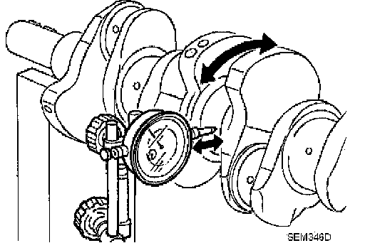 c. While rotating the crankshaft, read the movement of the pointer on the dial gauge.