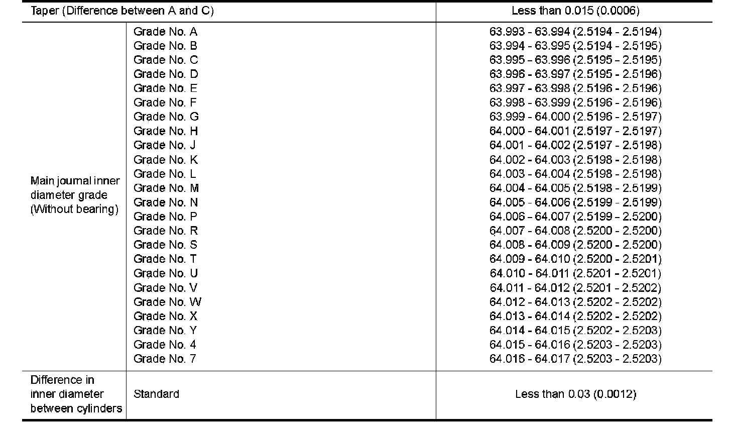 Taper (A - B): 0.002 mm (0.0001 inch)