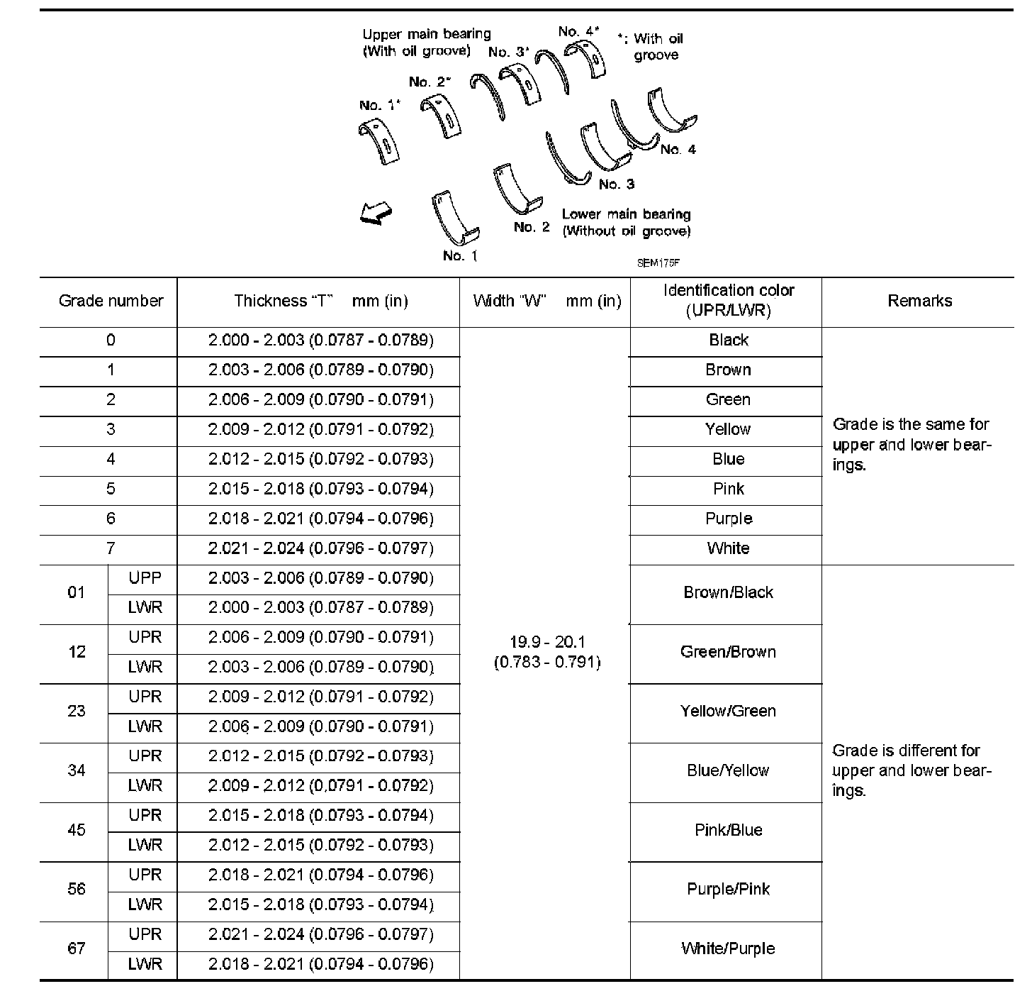 AVAILABLE MAIN BEARING: