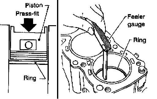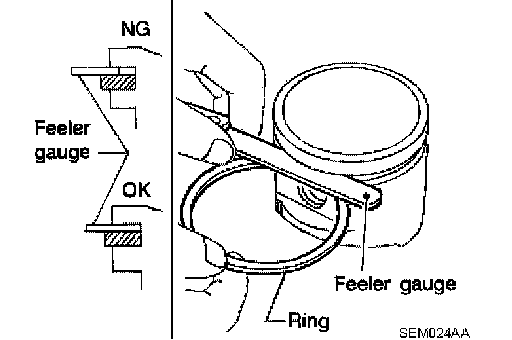 ^ If out of specification, replace piston ring. If gap still exceeds the limit even with a new ring, re-bore cylinder and use oversized piston and piston ring.