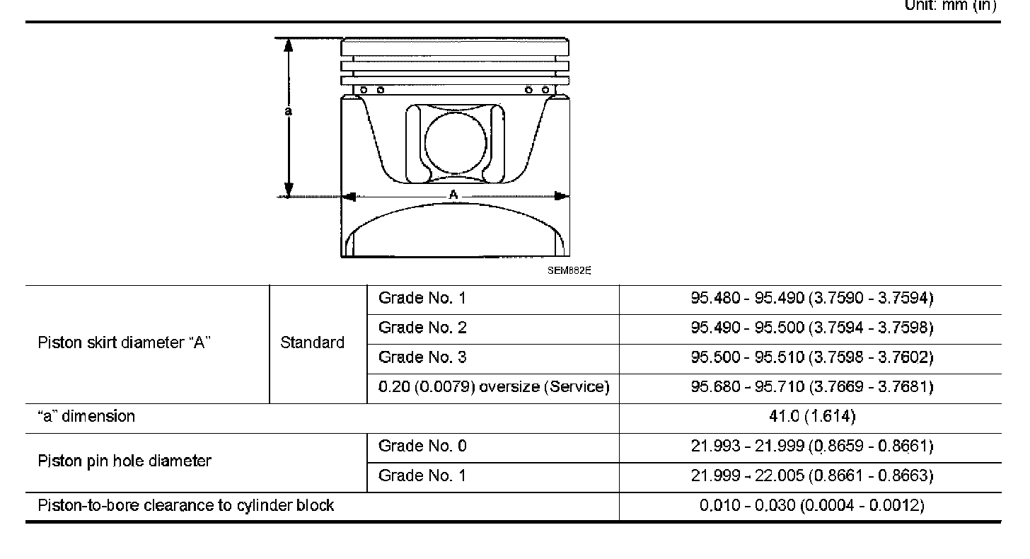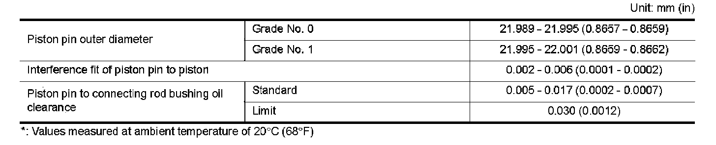 PISTON AND PISTON PIN CLEARANCEInner Diameter of Piston Pin Hole