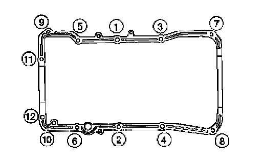 Install the lower oil pan. Tighten the lower oil pan bolts in order as shown.