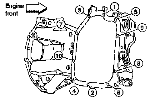 Tighten upper oil pan bolts in the order as shown.
