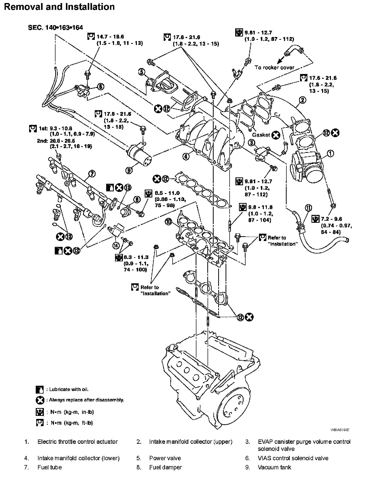 ^ Tighten the bolts of the intake manifold collector (upper) and electric throttle control actuator assembly equally and diagonally to specification.