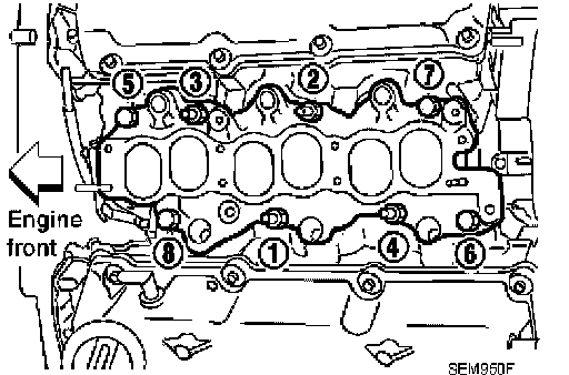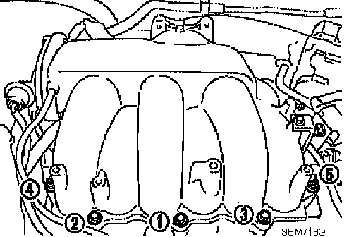 Intake Manifold^ Install intake manifold bolts in two stages in the numerical order as shown.