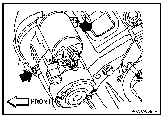 5. Remove the two starter mounting bolts, using power tools.