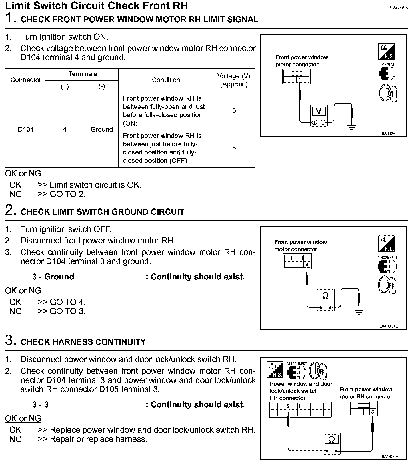 Limit Switch Circuit Check Front RH (Steps 1 - 3):