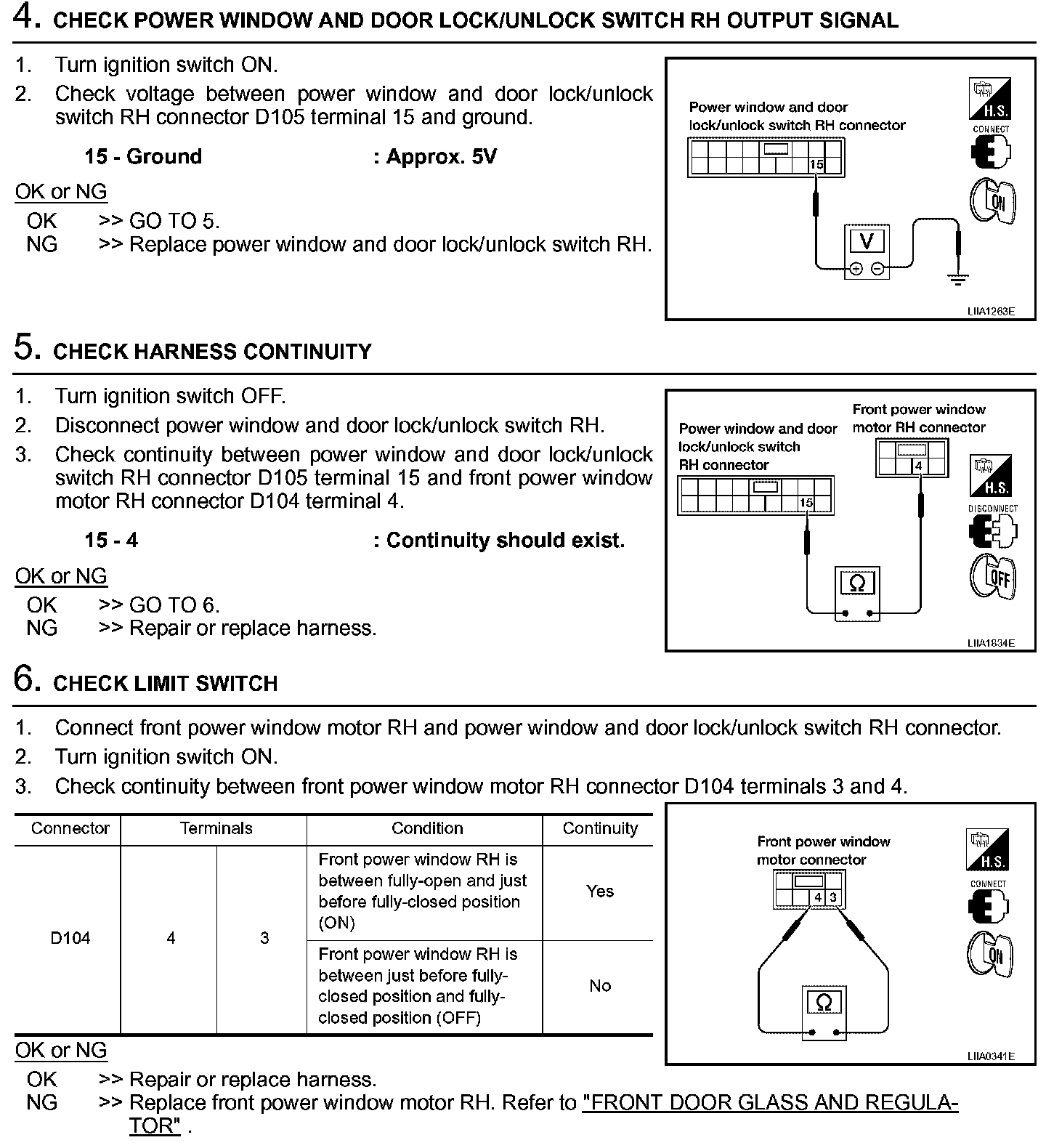 Limit Switch Circuit Check Front RH (Steps 4 - 6):