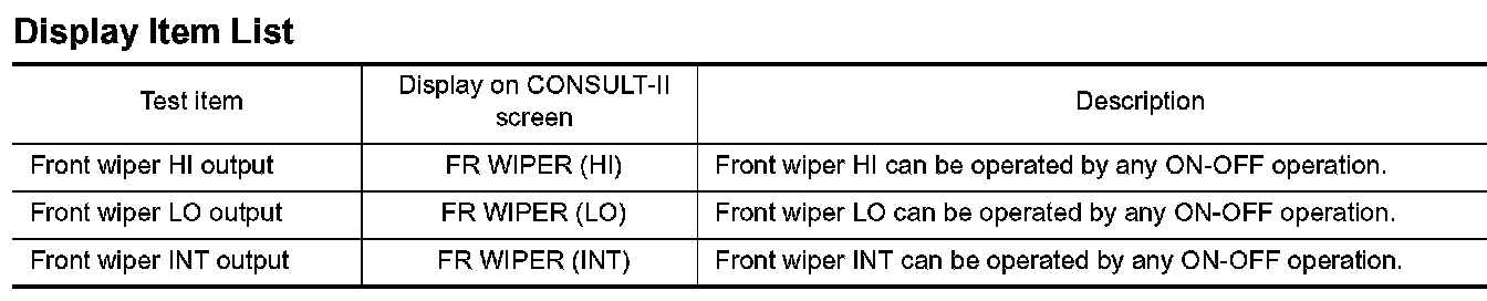 1. Touch "WIPER" on the "SELECT TEST ITEM" screen.