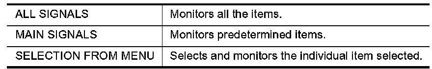 2. Touch "ALL SIGNALS", "MAIN SIGNALS" or "SELECTION FROM MENU" on the "SELECT MONITOR ITEM" screen.