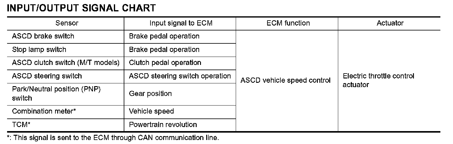 When the ECM detects any of the following conditions, the ECM will cancel the cruise operation and inform the driver by blinking indicator lamp.