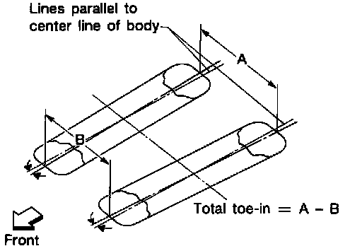 Total toe-in: The sum of (A - B). Refer to "Rear Wheel Alignment (Unladen*)". [1][2]Rear Suspension