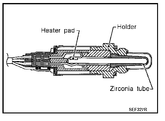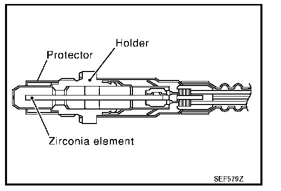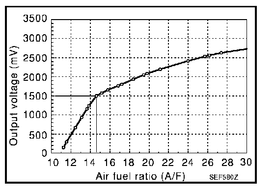 This sensor is made of ceramic zirconia. The zirconia generates voltage from approximately 1 V in richer conditions to 0 V in leaner conditions.