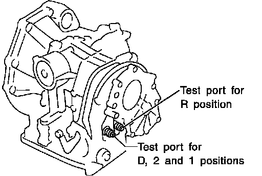 Location of line pressure test ports are shown in the illustration.