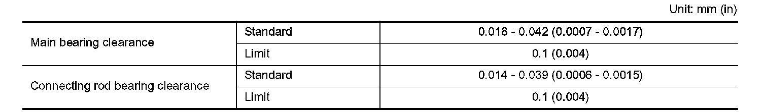 ^ If a new bearing, crankshaft or connecting rod is replaced, select connecting rod bearing according to the following table.