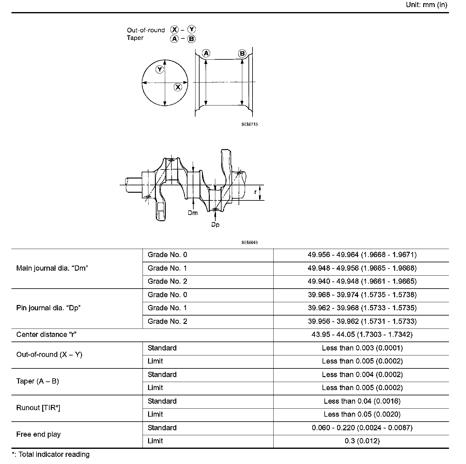 Runout, Standard (Total indicator reading): Less than 0.04 mm (0.0016 inch)