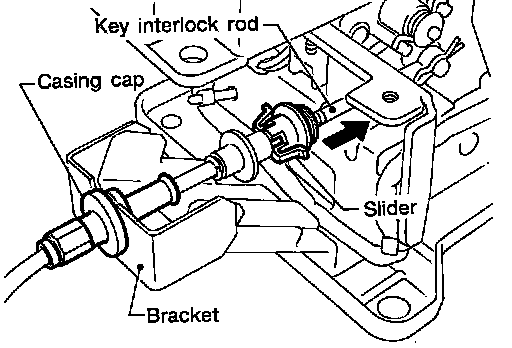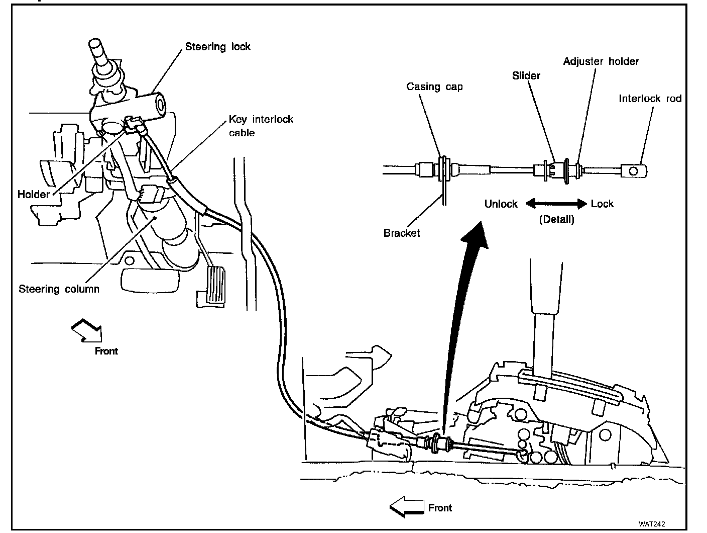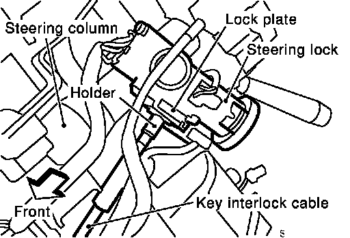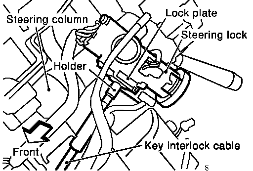 2. Remove lock plate from steering lock assembly and remove key interlock cable.