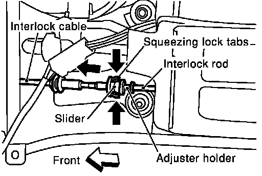 1. Unlock slider by squeezing lock tabs on slider from adjuster holder and remove interlock rod from cable.