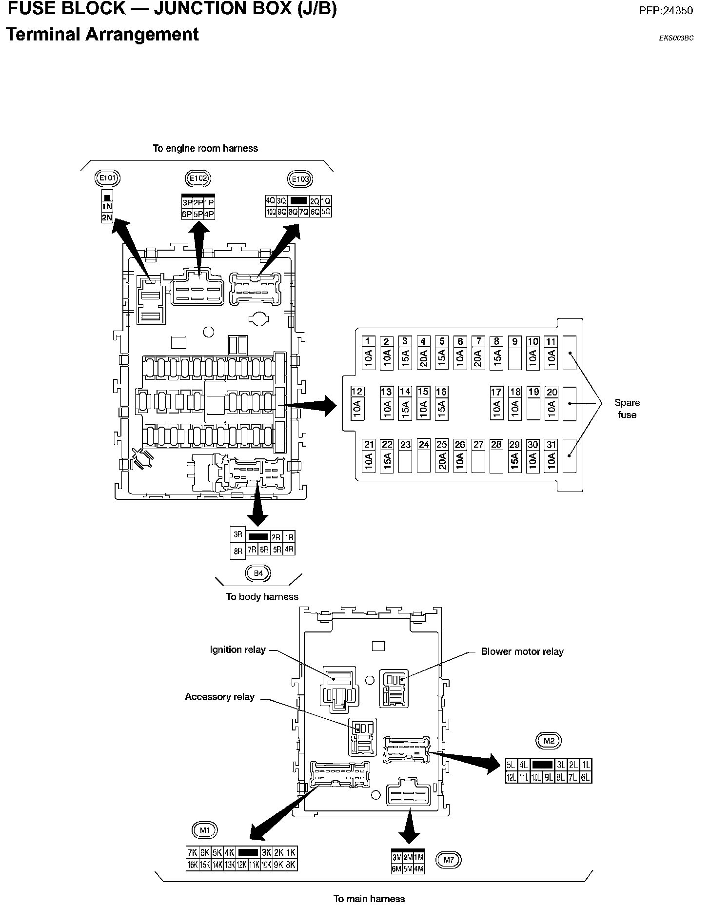 Fuse Block-Junction Box (J/B) - Terminal Arrangement: