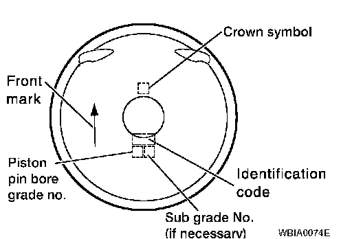 ^ Regarding marks on piston head, refer to EM-173, "HOW TO SELECT A PISTON". How to Select Piston and Bearing