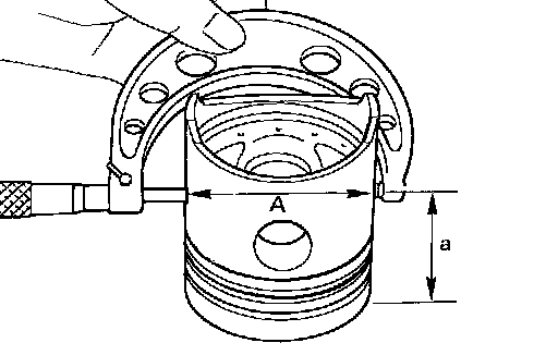 ^ Measure piston skirt diameter (A).