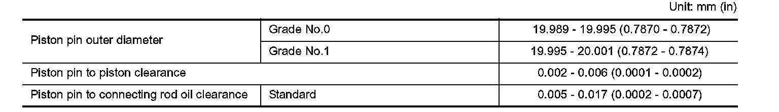 ^ Refer to EM-182, "CONNECTING ROD BUSHING OIL CLEARANCE (SMALL END)" for the values for each grade at the plant.