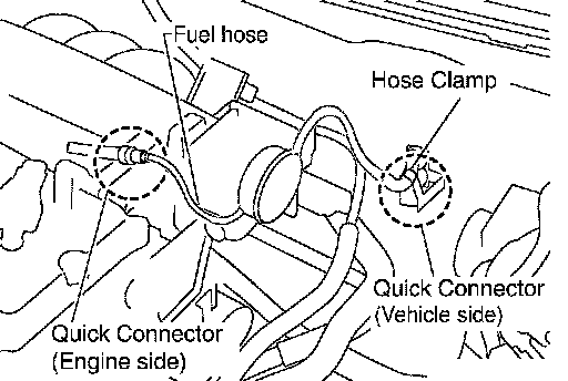 CONNECTING QUICK CONNECTOR ON THE FUEL HOSE (ENGINE SIDE)