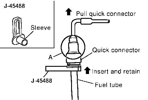 ^ Hold at position "A" as shown, when inserting the fuel tube into the quick connector.