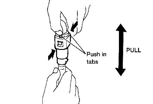 b. Hold the sides of the connector, push in tabs and pull out the tube.