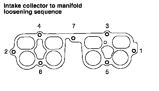 12. Loosen the intake manifold collector bolts and nuts in the order shown to remove the intake manifold collector.