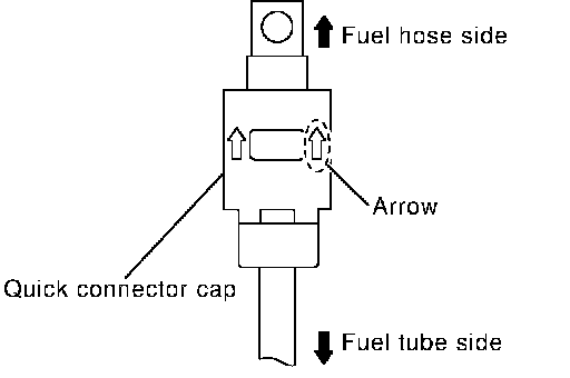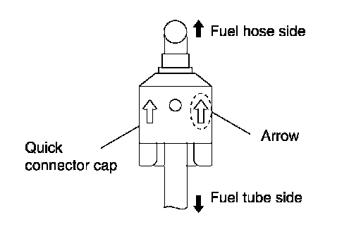 ^ Direct arrow mark on quick connector cap to upper side (fuel hose side).
