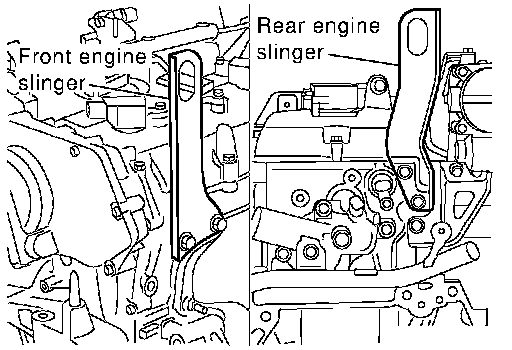 23. Install engine slingers into front left cylinder head and rear right cylinder head.