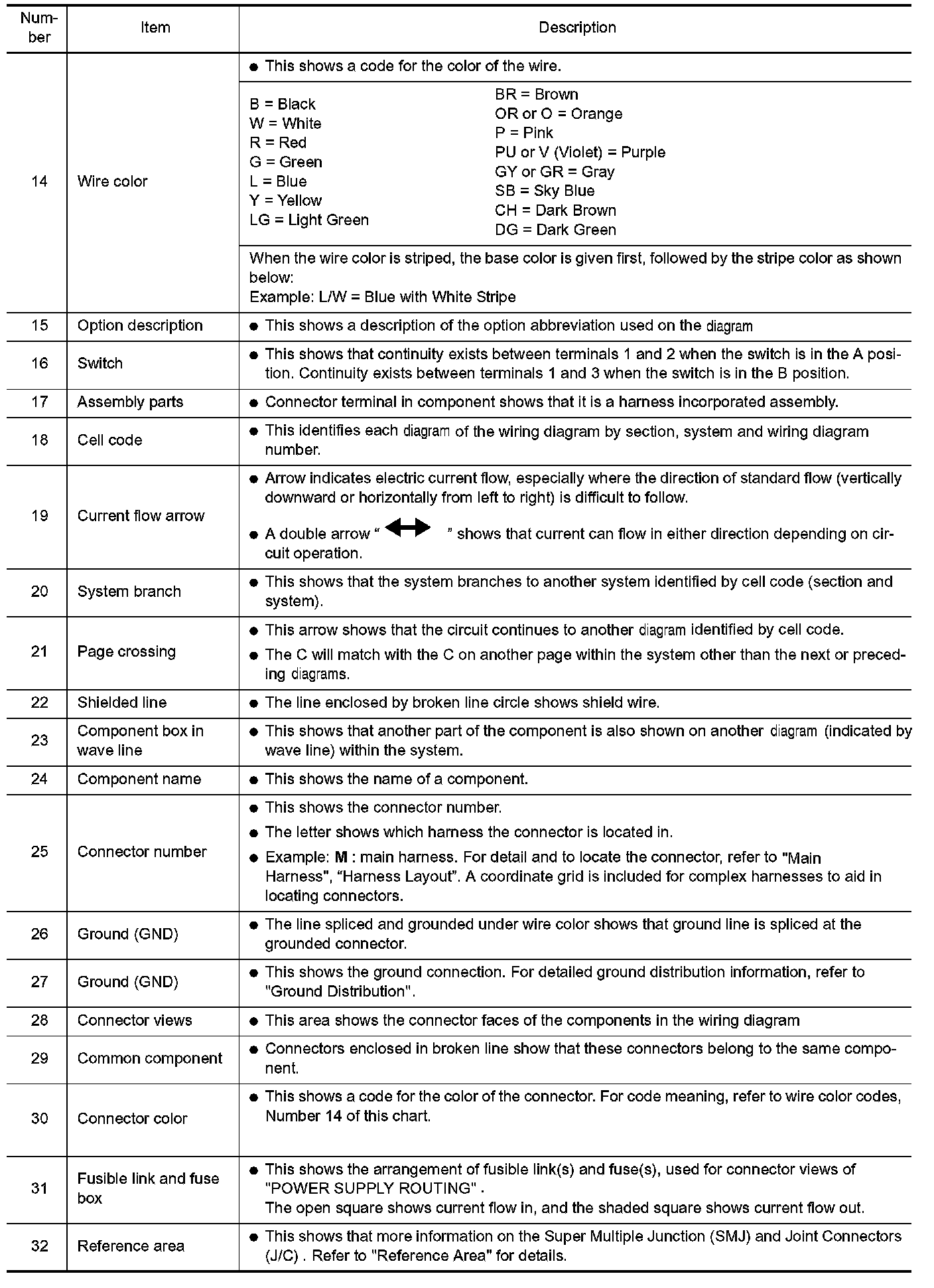 The Reference Area of the wiring diagram contains references to additional electrical reference diagrams. If connector numbers and titles are shown in the Reference Area of the wiring diagram, these connector symbols are not shown in the Connector Area.