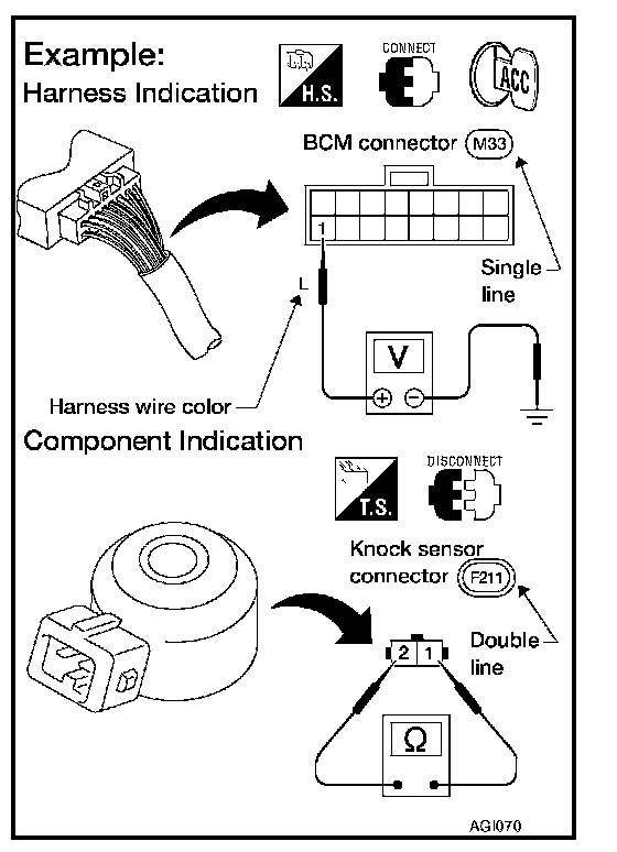 - Certain systems and components, especially those related to OBD, may use a new style slide-locking type harness connector. For description and how to disconnect, refer to Power Supply, Ground & Circuit Elements "Description", "HARNESS CONNECTOR".