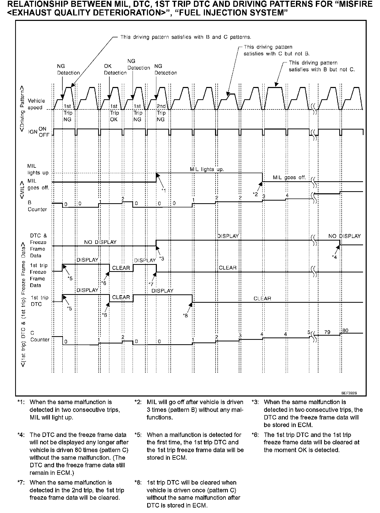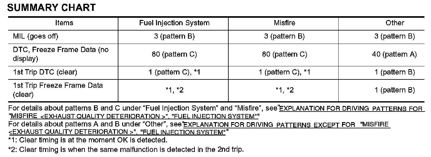- The MIL will go off when the B counter reaches 3. (*2 in "OBD SYSTEM OPERATION CHART")