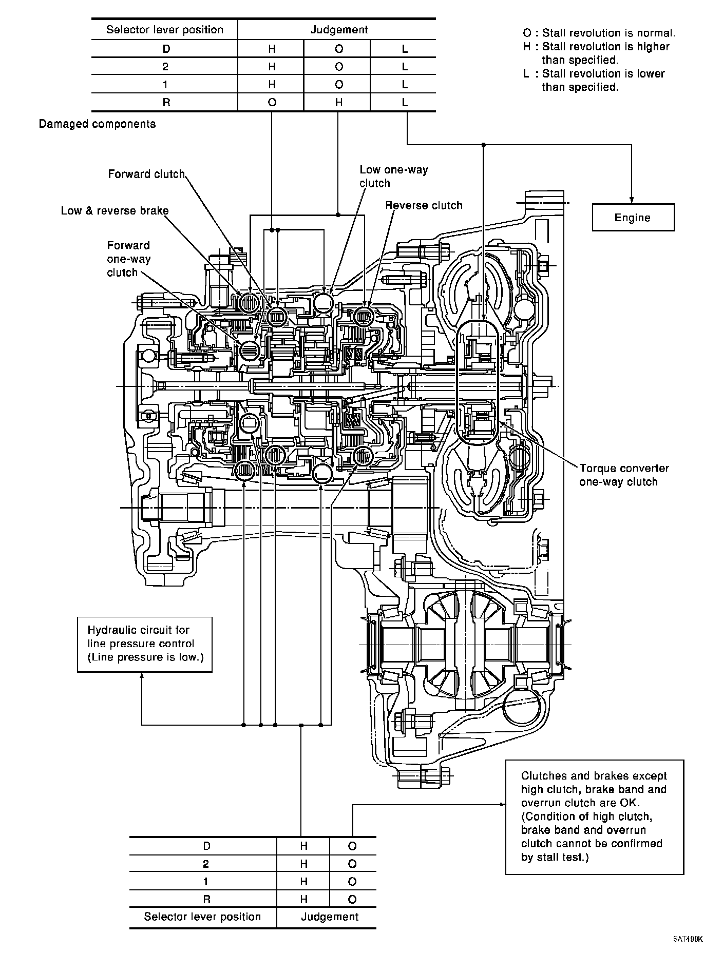 1st and 2nd gears in 2 position and engine brake functions with accelerator pedal released (fully closed throttle). Forward clutch or forward one-way clutch slippage