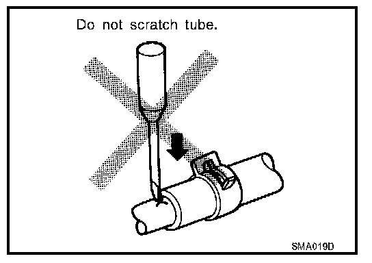 - To prevent damage to rubber hose, do not pry off rubber hose with tapered tool or screwdriver.