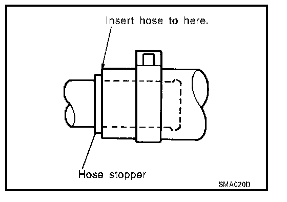 - To reinstall the rubber hose securely, make sure that hose insertion length and orientation is correct. (If tube is equipped with hose stopper, insert rubber hose into tube until it butts up against hose stopper.)