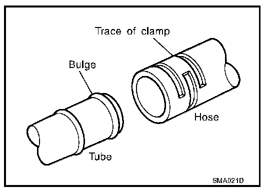 - If old rubber hose is re-used, install hose clamp in its original position (at the indentation where the old clamp was). If there is a trace of tube bulging left on the old rubber hose, align rubber hose at that position.