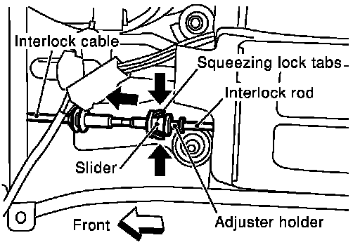 1. Unlock slider by squeezing lock tabs on slider from adjuster holder and remove interlock rod from cable.