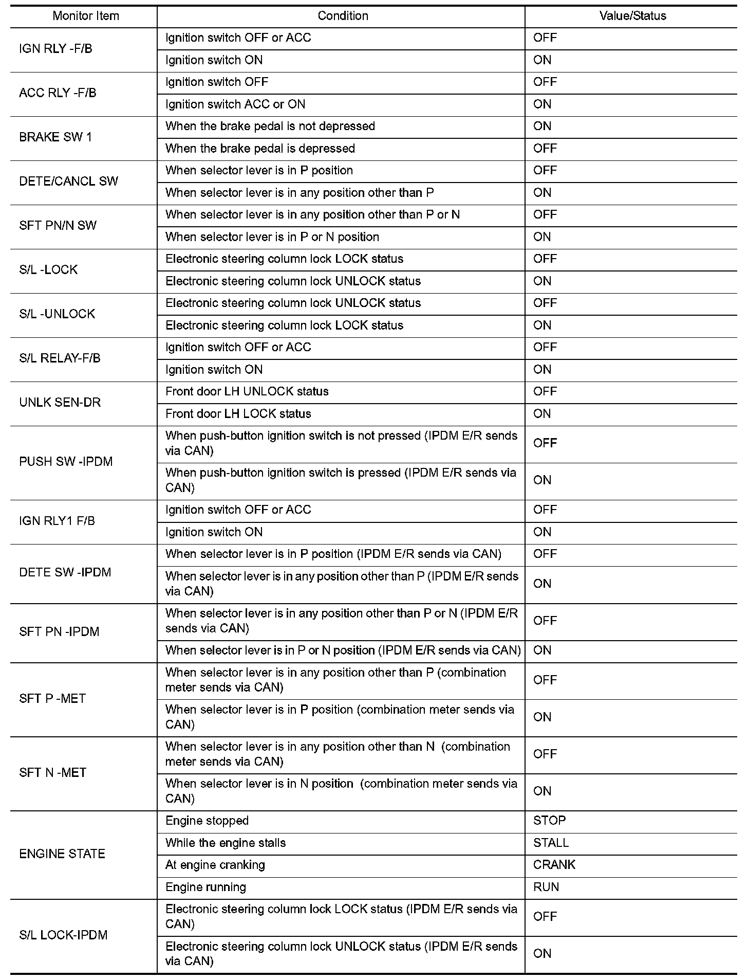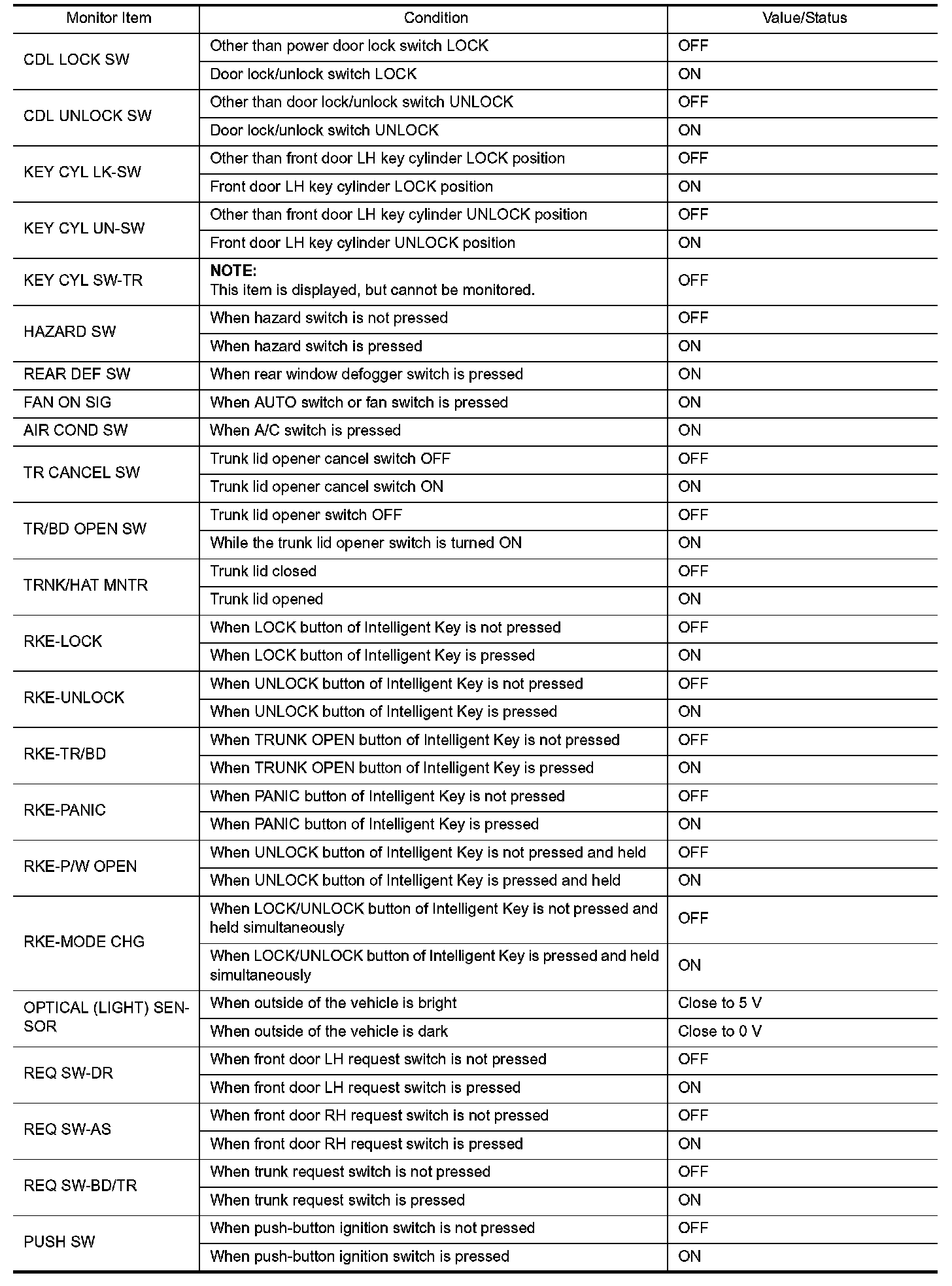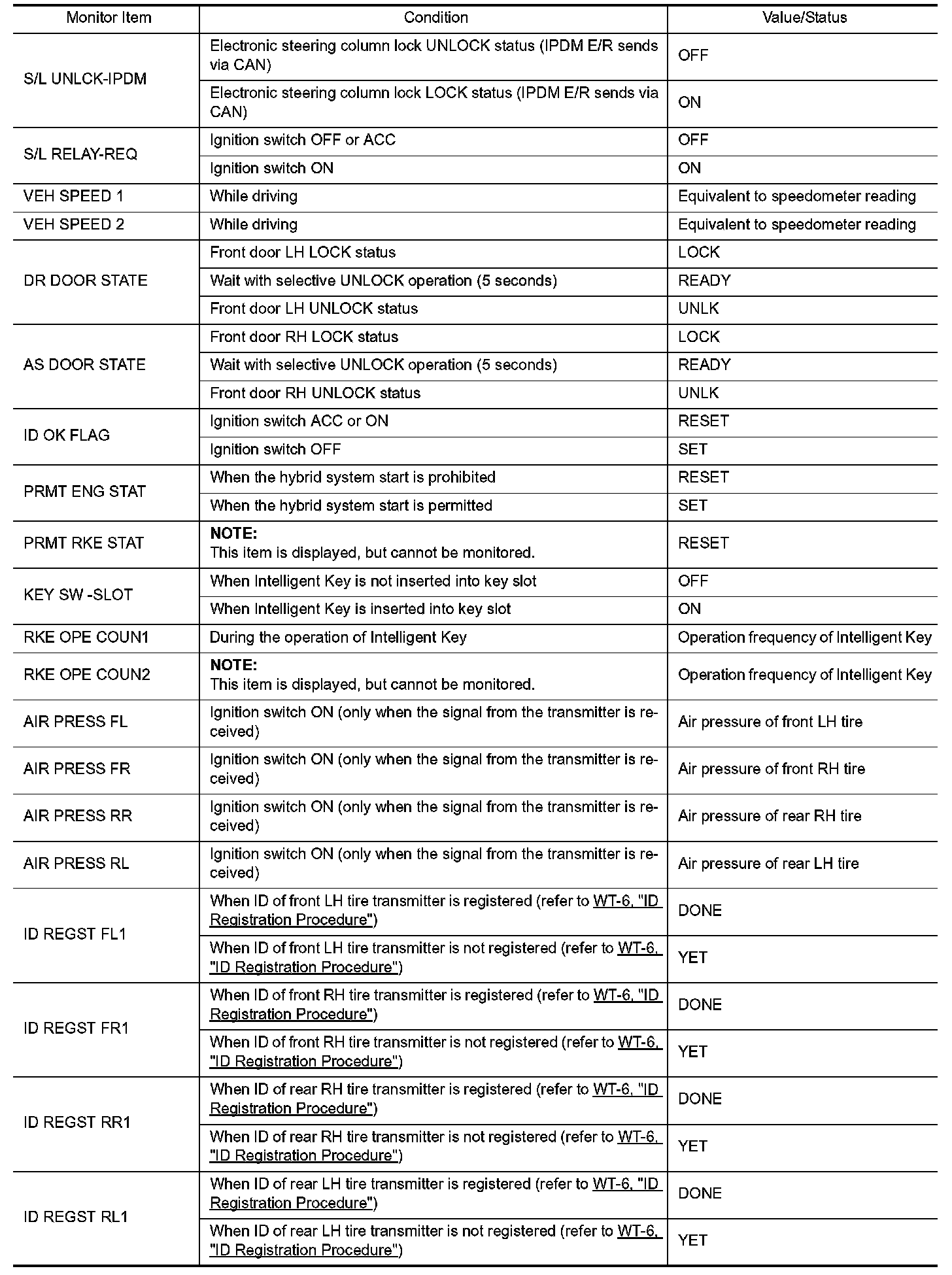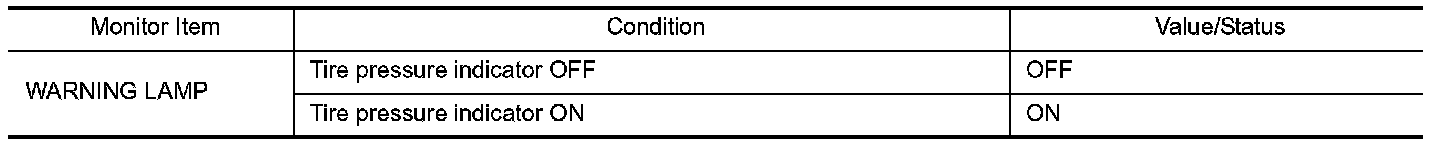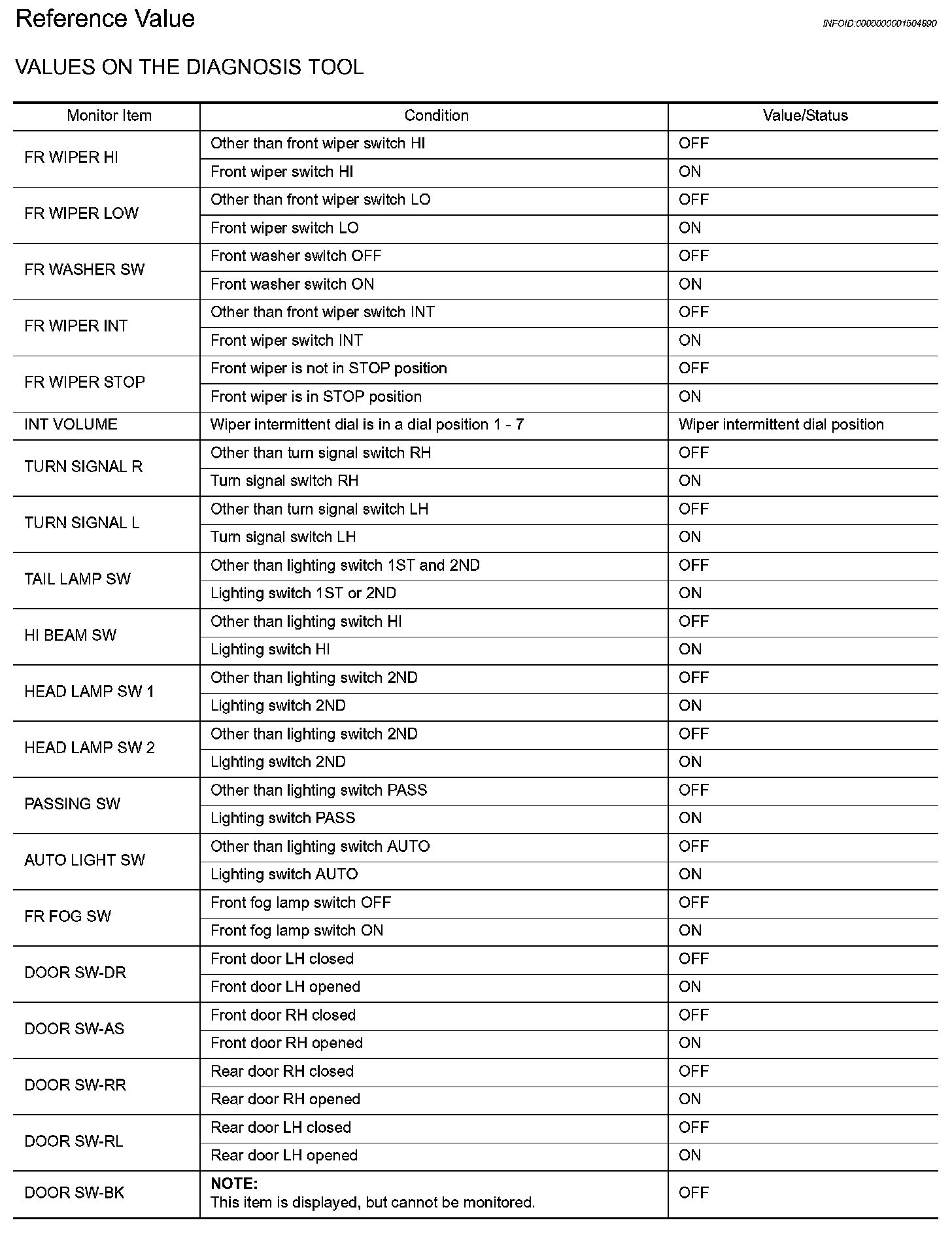 Body Control - Data Monitor Display Item Reference Value List