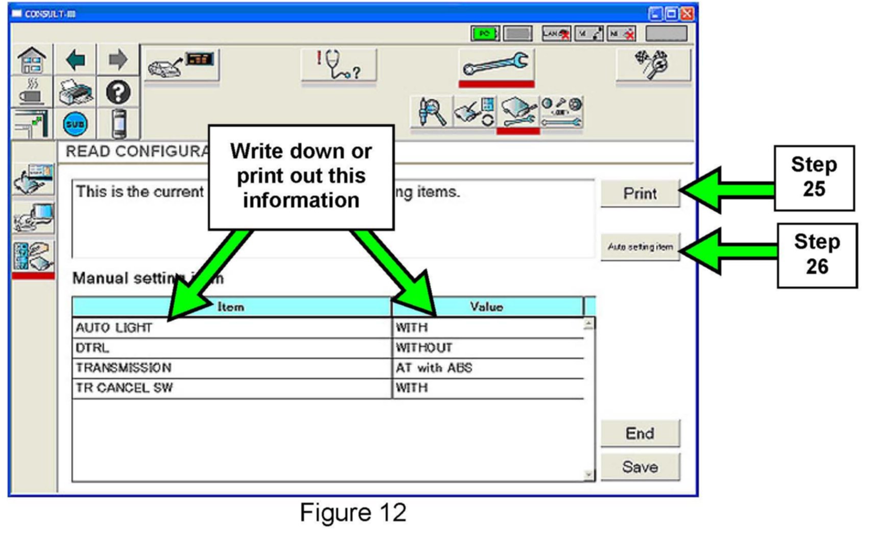 25. Write down or print out all the manual setting items and values. (See Figure 12.)
