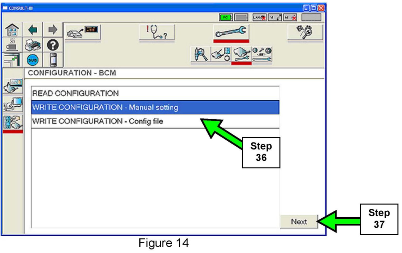 36. Select WRITE CONFIGURATION - Manual setting. (See Figure 14.)