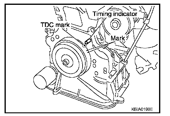 a. Rotate the crankshaft pulley clockwise and align the mating marks to the timing indicator on the front cover.