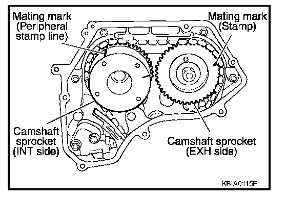 - Be careful not to let mating marks of each sprocket and timing chain slip.