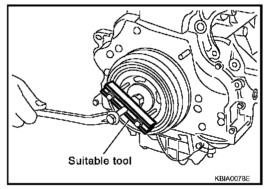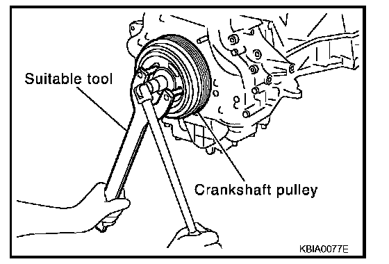 - Secure crankshaft pulley with a pulley holder to tighten the bolt.