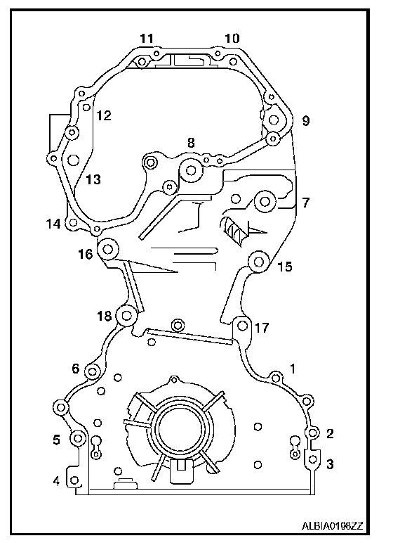 d. Tighten front cover bolts in the numerical order as shown.