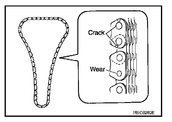 Check the timing chain for cracks or serious wear. If a defect is detected, replace it.