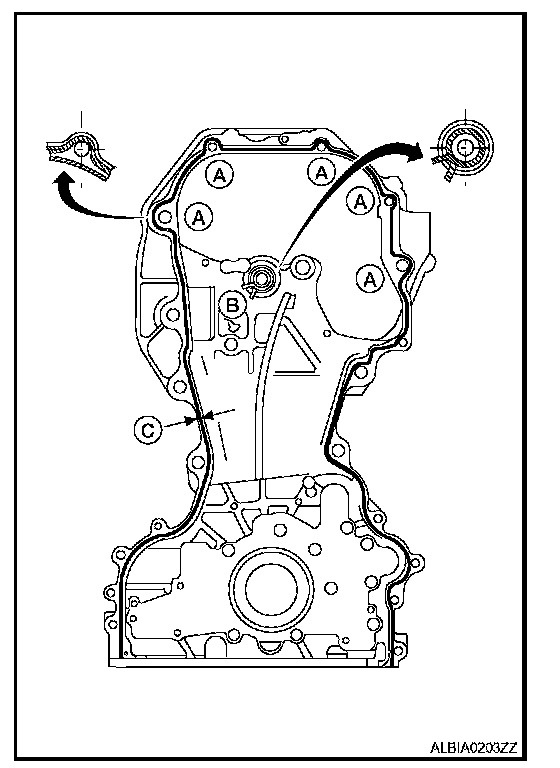 - Apply Genuine Silicone RTV Sealant or equivalent, to positions specified as shown.
