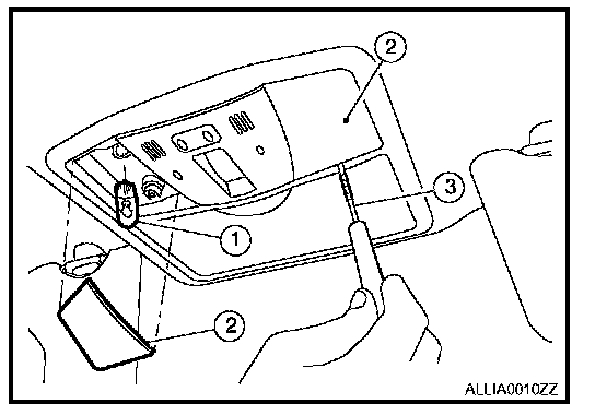 Using a suitable tool (3), remove map lamp lens (2) RH/LH.